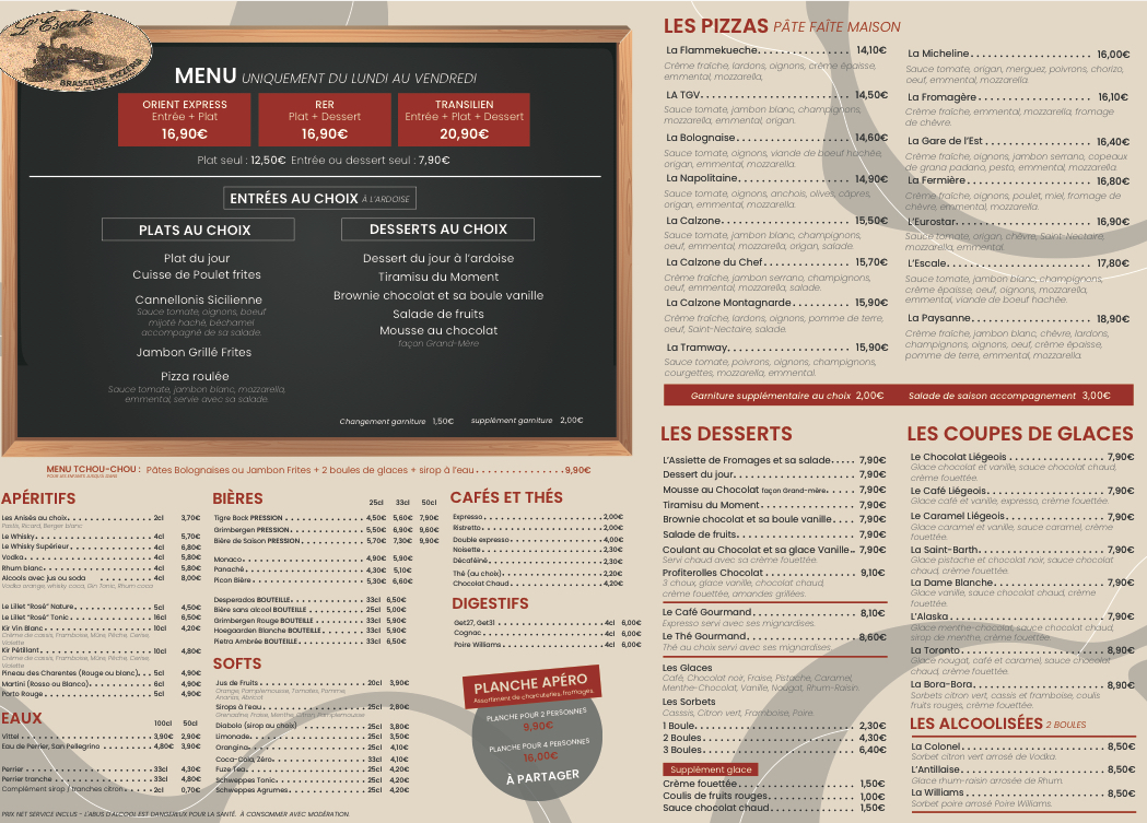 Brasserie de L'escale, nestled in the heart of Poitiers at 105 Rue de la Bugellerie, is a delightful culinary oasis. This charming brasserie artfully combines delicious, well-prepared dishes with a warm dining atmosphere reflective of a train theme. Customers rave about the diverse menu, featuring handmade pizzas and fresh lasagna, complemented by La Pictave craft beer. Acclaimed for its prompt, polite service and the ability to welcome travelers, Brasserie de L'escale is a perfect stop for those seeking a gratifying meal, whether on a journey or enjoying a leisurely lunch. Immerse yourself in the flavors and ambiance—it's truly a tasty experience worth savoring!